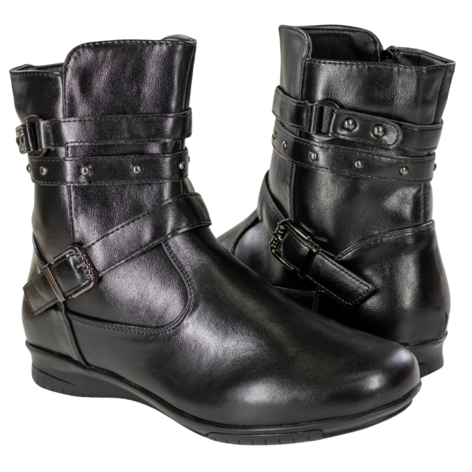 A Bota Feminina Mooncity Rasteira Fivela, é a combinação perfeita entre conforto e estilo. Com acabamento liso e elegante, o modelo se destaca pelas tiras com fivelas e aplicação de tachas, que trazem um visual moderno e cheio de personalidade. O solado baixo e leve proporciona maior conforto para o uso diário, enquanto o design versátil permite compor desde looks casuais até produções mais estilosas. Ideal para quem busca praticidade sem abrir mão de um visual marcante.