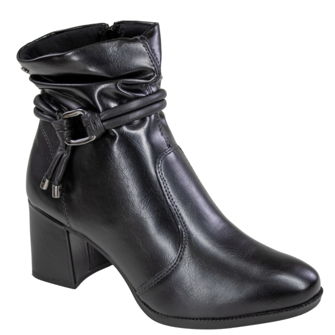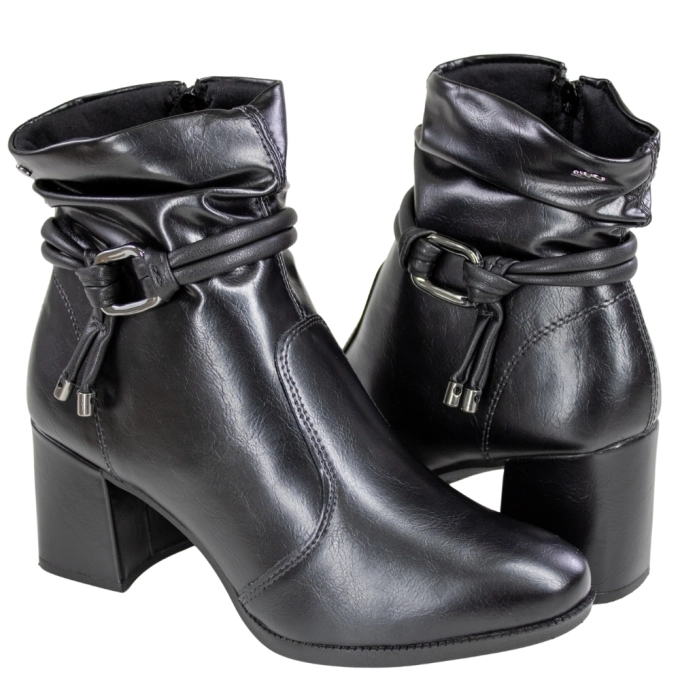 A Bota Feminina Cano Baixo Salto Bloco Fivela, é a combinação perfeita de elegância e estilo para o dia a dia. Com acabamento sofisticado na cor preta, o modelo traz um visual moderno que combina facilmente com diferentes looks. O destaque fica por conta do cano com efeito enrugado, acompanhado de um detalhe em tira com fivela lateral, que adiciona charme e personalidade ao calçado. O salto bloco médio proporciona mais estabilidade e conforto ao caminhar, ideal para quem busca praticidade sem abrir mão do estilo.