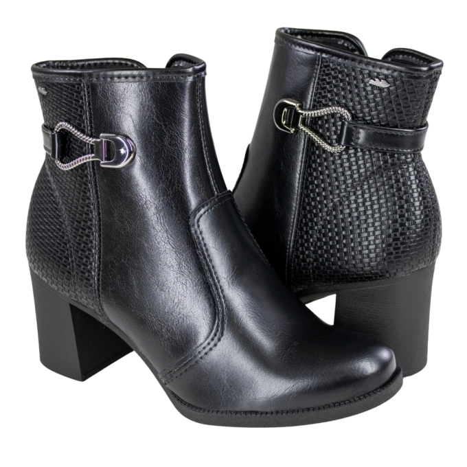 A Bota Feminino Cano Baixo Salto Bloco Fivela, é ideal para quem busca elegância e conforto no dia a dia. Com design clássico na cor preta, o modelo apresenta acabamento sofisticado e detalhe texturizado na parte traseira que traz um toque moderno ao visual. O destaque fica por conta do enfeite lateral metalizado, que valoriza ainda mais o modelo e adiciona charme ao calçado. O salto bloco médio proporciona mais estabilidade e conforto ao caminhar, ideal para usar durante todo o dia.