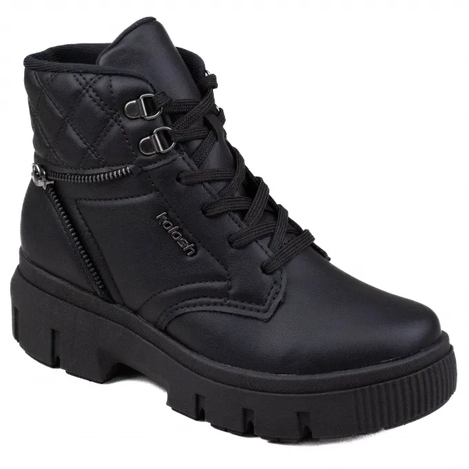 O Coturno Feminino Kolosh Tratorado é um modelo elegante e versátil, perfeito para ser usado no dia a dia. Seu cabedal possui material sintético, o que garante durabilidade e resistência ao longo do tempo. O modelo conta com costuras que formam volumes com toque fofinho no cano e seu fechamento em cadarço garante um ajuste perfeito ao pé. Já a nova palmilha Impulse+ de memória inteligente é ainda mais confortável, pois absorve os impactos da pisada. A sola tratorada com altura de 5 cm também se destaca, criando um visual imponente e sofisticado.
