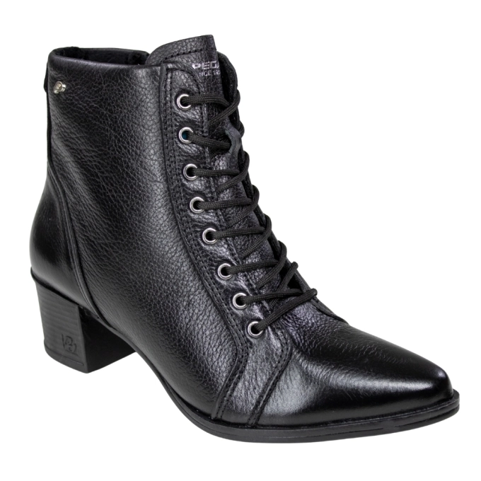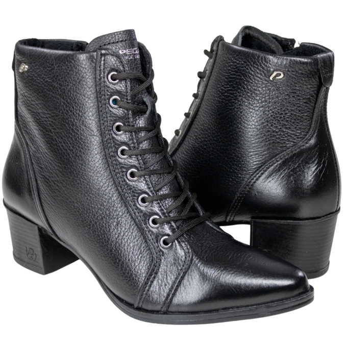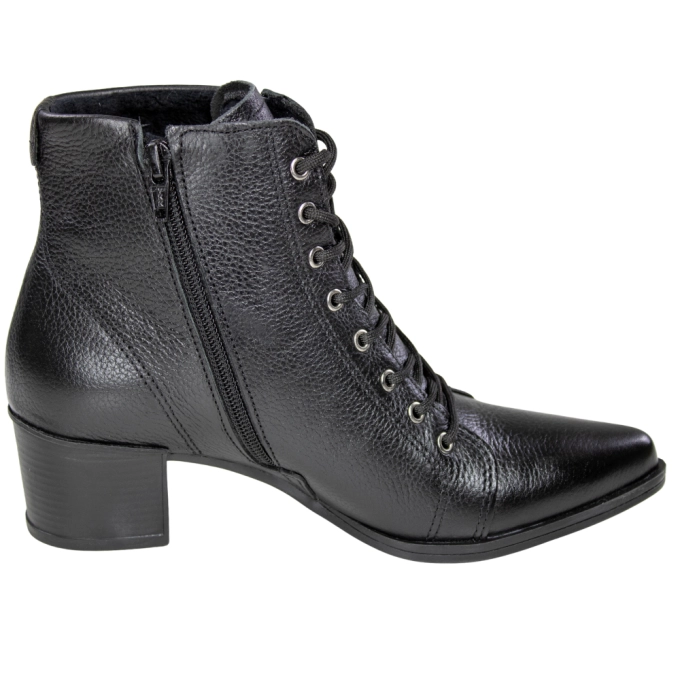 O coturno feminino Pegada bico fino é um modelo confortável e moderno essencial para complementar seus looks. Seu modelo tem cabedal em couro e bico fino e sua parte interna é têxtil. Tem solado emborrachado e fechamento em cadarço e zíper lateral para facilidade e segurança no calce.