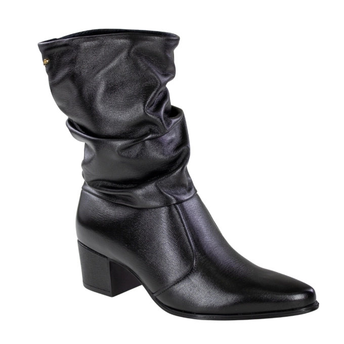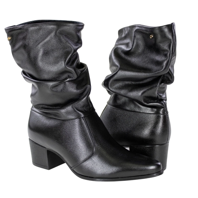 A Bota Feminina Pegada Cano Médio Bloco Plissado é a escolha ideal para quem busca elegância e versatilidade em um único modelo. Com visual sofisticado e atemporal, combina perfeitamente com produções modernas e clássicas. O destaque fica por conta do cano médio com efeito enrugado (plissado), que agrega charme e personalidade ao design. Confeccionada em couro, possui toque macio e acabamento impecável, garantindo qualidade e durabilidade. O salto bloco médio de 5 cm oferece mais estabilidade e conforto ao caminhar, enquanto o bico levemente fino ajuda a alongar a silhueta. O solado em borracha proporciona segurança e melhor aderência no dia a dia.Perfeita para compor looks com jeans, saias ou vestidos nos dias mais fresquinhos.