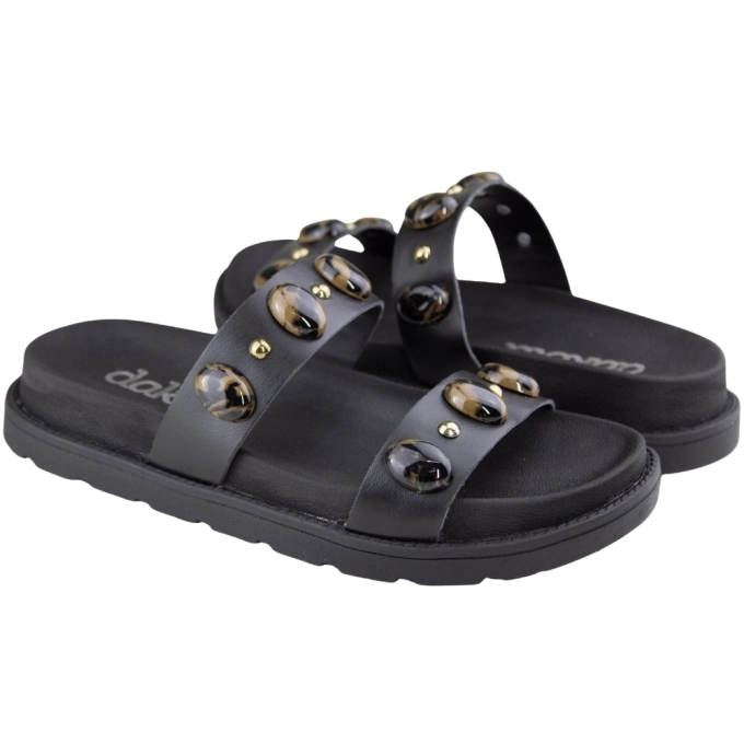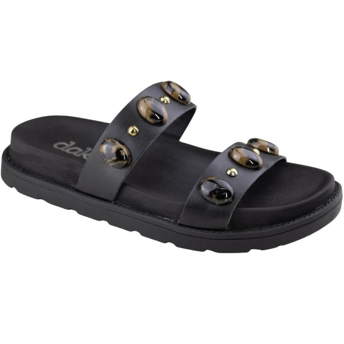 A Sandália Feminina Dakota Flatform Pedras, combina perfeitamente elegância e praticidade, sendo ideal para quem deseja um toque sofisticado no dia a dia sem abrir mão do conforto. Seu design moderno conta com duas tiras largas adornadas com pedrarias delicadas e acabamento metalizado, que adicionam charme e um brilho sutil ao visual. É confeccionada em material sintético de alta qualidade, garantindo durabilidade, leveza e um excelente acabamento. A sola flatform emborrachada oferece estabilidade e aderência, tornando a sandália perfeita para o uso diário com estilo e segurança.