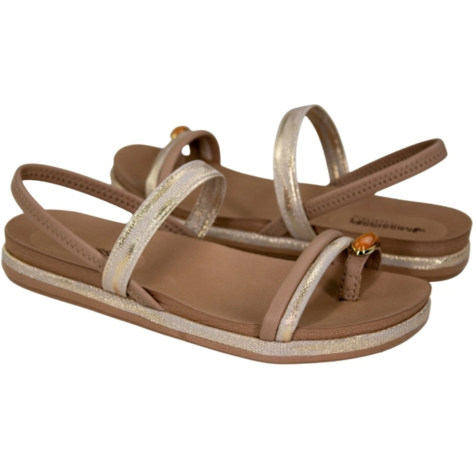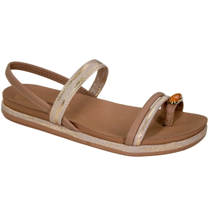 A Sandália Feminina Rasteira Dedo, combina estilo delicado e conforto para o dia a dia. Confeccionada em material sintético de alta qualidade, o modelo apresenta tiras finas com acabamento metalizado, que adicionam brilho e sofisticação ao design. O cabedal possui três tiras: uma traseira ajustada ao calcanhar, que garante firmeza ao caminhar, uma central com leve efeito brilhoso, proporcionando modernidade e uma frontal com detalhe de pedraria em tom âmbar, que dá um toque elegante e feminino. A palmilha macia e anatômica oferece conforto prolongado, ideal para uso diário. Já o solado emborrachado antiderrapante proporciona segurança e estabilidade em cada passo. Versátil, essa sandália é perfeita para compor produções casuais e leves, podendo ser usada tanto em momentos descontraídos quanto em ocasiões que pedem um visual mais delicado e sofisticado.