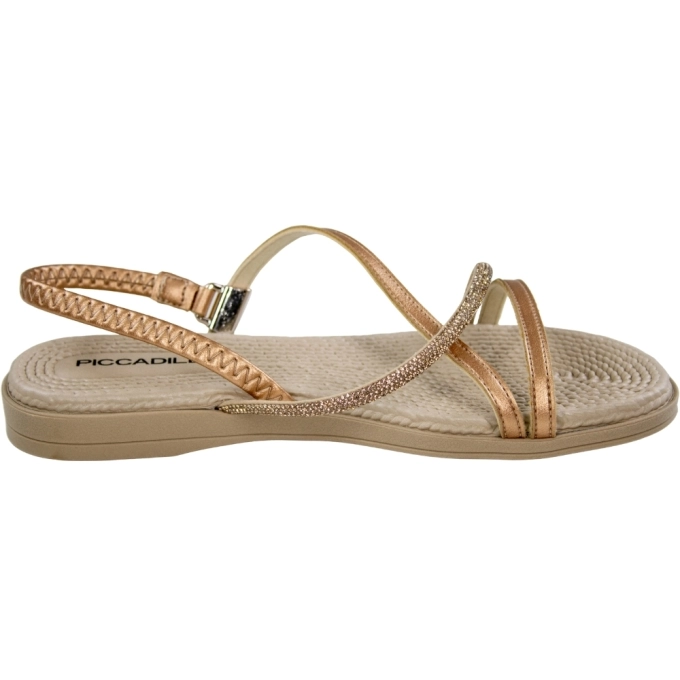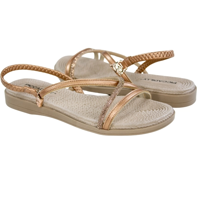 A Sandália Feminina Piccadilly Rasteira Strass, seu estilo versátil combina com diversas ocasiões, desde compromissos informais até momentos casuais, sendo uma ótima opção para os looks de verão. O calce é fácil, pois o modelo conta com uma tira maleável elástico que envolve o calcanhar, garantindo um ajuste perfeito sem a necessidade de fechos complexos. Apresenta uma palmilha macia e solado leve que proporciona suporte e amortecimento, sendo ideal para uso prolongado.