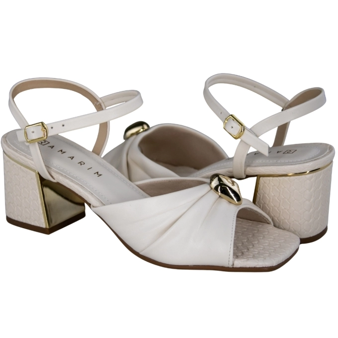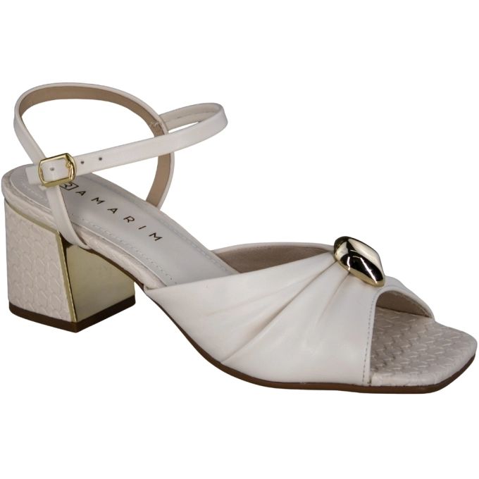 Tamanco Feminino Ramarim Salto Bloco metal, é a combinação perfeita entre elegância, conforto e estilo moderno, ideal para compor looks sofisticados em diversas ocasiões. Confeccionada em material sintético de alta qualidade, essa sandália apresenta design delicado em tom off-white, com detalhe torcido na parte frontal e aplicação de adorno dourado, que adiciona um toque de sofisticação ao visual. O salto bloco médio 6 cm, revestido com textura em relevo e detalhe metalizado dourado, garante charme e estabilidade ao caminhar.