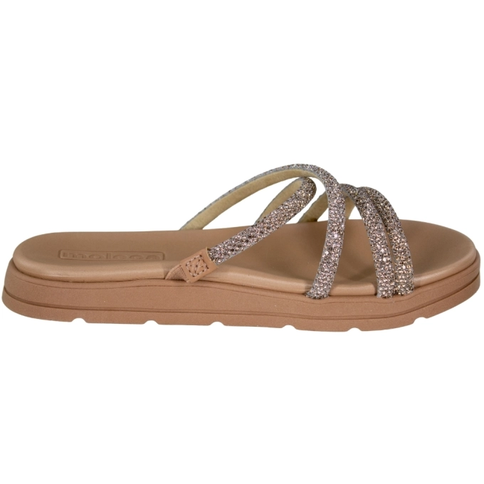 Tamanco Feminino Moleca 3T Pedras é a combinação perfeita entre conforto e estilo moderno. O modelo apresenta solado flatform emborrachado que oferece ótima estabilidade e amortecimento a cada passo. As tiras finas adornadas com pedrarias brilhantes trazem um toque de sofisticação e glamour, tornando o calçado ideal tanto para o dia a dia quanto para ocasiões mais casuais à noite.Com palmilha macia e anatômica, proporciona sensação de bem-estar prolongada, enquanto o design leve e o calce fácil garantem praticidade. Essa papete é perfeita para quem busca um visual elegante sem abrir mão do conforto característico da Moleca.