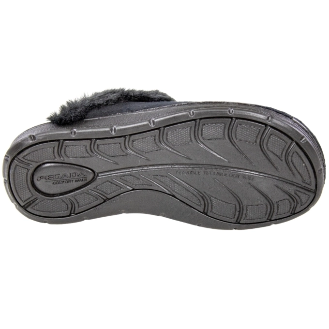 A Pantufa Feminina Pegada, é confeccionada em tecido atoalhado de alta qualidade, com um toque suave e macio. O seu grande destaque é o forro interno e a borda peluciada em lã sintética, que abraçam os pés, garantindo conforto térmico ideal para os dias mais frios. A sola, com aproximadamente 2,5 cm de altura, é feita em material leve e flexível, proporcionando amortecimento e segurança ao caminhar.
