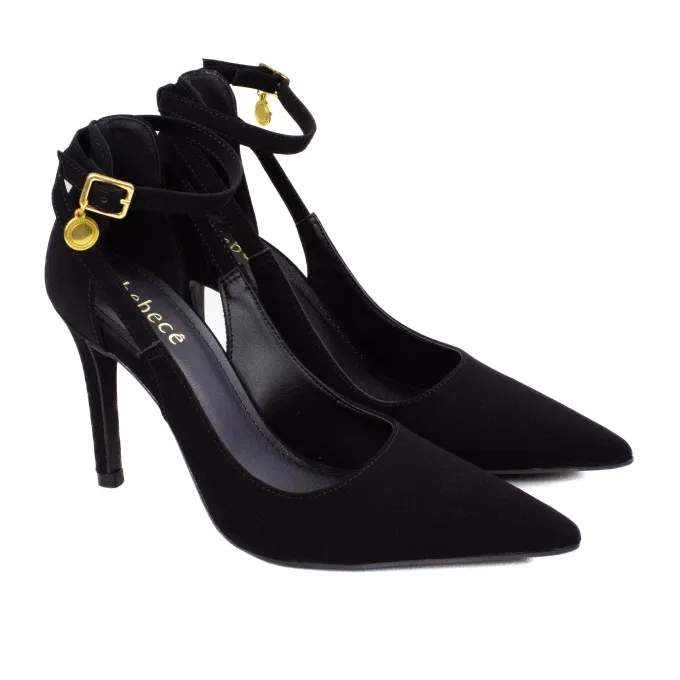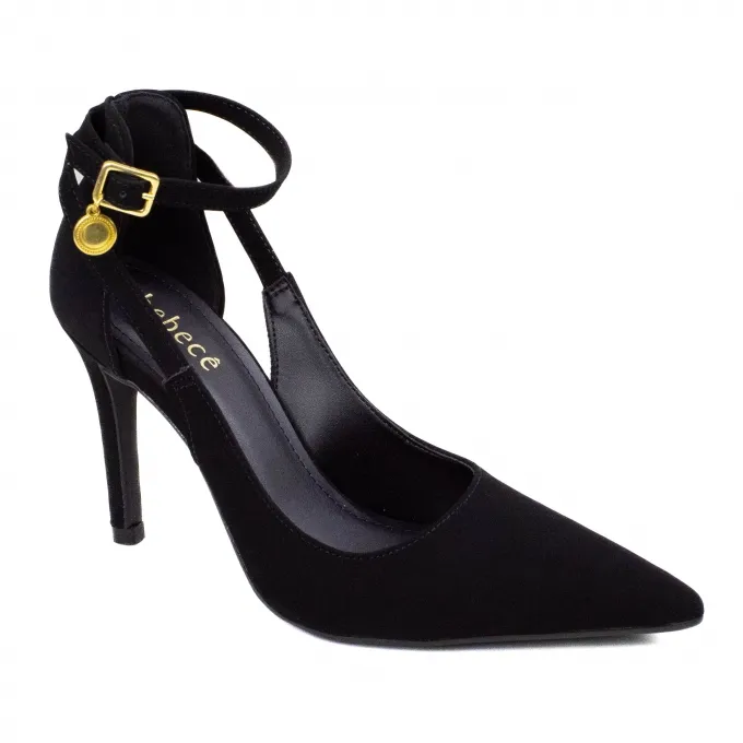 O Scarpin Feminino Bebecê Salto Nobuck é um arraso. Seu modelo tem cabedal sintético, possui bico fino e sua palmilha é sintética, seu fechamento é fivela, e o solado é em borracha para maior segurança na pisada.