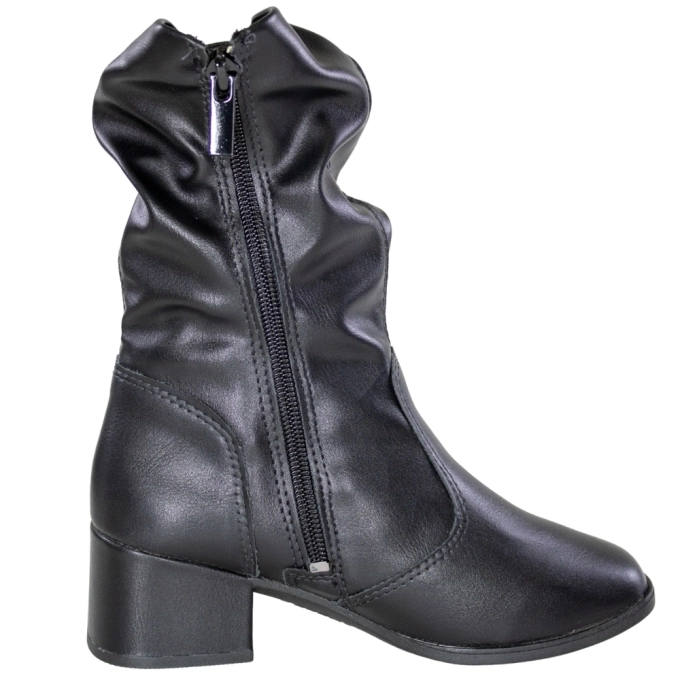 A Bota Infantil Feminina Pink Cats Cano Médio Salto Bloco Plissado, o modelo apresenta cano médio com efeito enrugado (slouchy), que traz um visual atual e cheio de personalidade, ideal para compor produções elegantes e versáteis. Confeccionada em material sintético de alta qualidade, a bota possui acabamento macio e toque suave, proporcionando maior conforto durante o uso. Seu cabedal conta com detalhe discreto da marca, agregando charme ao visual sem perder a elegância. O salto médio de 4,5 cm, em formato bloco, garante mais estabilidade ao caminhar, além de oferecer altura na medida certa para valorizar a silhueta sem abrir mão do conforto. Já o solado emborrachado contribui para maior segurança e aderência no dia a dia. O modelo é fácil de calçar e se ajusta bem à perna, sendo perfeito para acompanhar desde looks casuais com jeans até combinações mais sofisticadas com vestidos e saias.