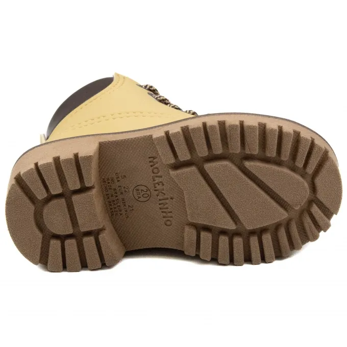 O Coturno Bebê Masculino Molekinho Cadarço é ideal para o seu pequeno ter muito conforto e estilo. O modelo possui o cabedal em sintético, fechamento em cadarço e palmiha têxtil e macia. Sua sola é emborrachada para maior segurança na pisada.