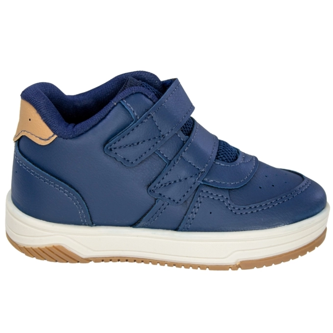 O Tênis Bebê Masculino Cano Médio Happy Kidy é a escolha ideal para acompanhar a rotina dos pequenos com muito conforto e praticidade. Com design moderno na cor azul marinho e detalhes que deixam o visual ainda mais estiloso, ele combina perfeitamente com looks casuais e escolares. Possui fechamento em tiras com velcro, que facilita o calce e promove mais autonomia para a criança no dia a dia. Seu cabedal em material sintético resistente é fácil de limpar e garante maior durabilidade para o uso diário. O solado emborrachado antiderrapante oferece mais segurança ao caminhar e brincar, proporcionando estabilidade e confiança em cada passo. Conforto, proteção e estilo em um só modelo para os pequenos explorarem o mundo com tranquilidade.