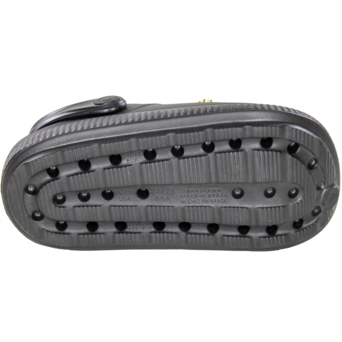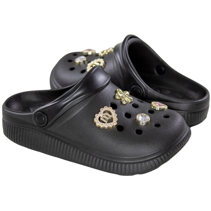 A Sandália Infantil Feminina Crocs, é ideal para o dia a dia e momentos de lazer. O destaque está nos apliques decorativos dourados e com pedrarias, que trazem um toque de charme e sofisticação. Entre eles, um coração com strass, uma florzinha dourada e pingentes com pedras brilhantes nas cores rosa e cristal. Possui tira traseira móvel para melhor ajuste e segurança ao caminhar, além de solado texturizado que garante boa aderência. Esse modelo é confeccionado em EVA, um material leve, flexível, resistente à água e fácil de limpar.