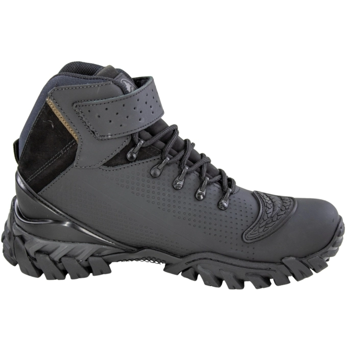 A Bota Masculina Macboot Rinoceronte, tem um visual robusto e funcional que transita bem entre o uso off-road e o urbano. ela é resistente à água. A Macboot também produz modelos 100% impermeáveis com tecnologia específica, mas este modelo em particular é resistente. Possui forro interno em nylon e uma palmilha exclusiva Anatomic System, feita de E.V.A. expandido com composto antibacteriano, que se ajusta à anatomia dos pés e ajuda a dispersar o suor. O design de cano alto oferece suporte ao tornozelo e ajuda a prevenir torções. Conta com um aplique de borracha na parte superior do cabedal para proteção extra ao trocar as marchas de uma moto.