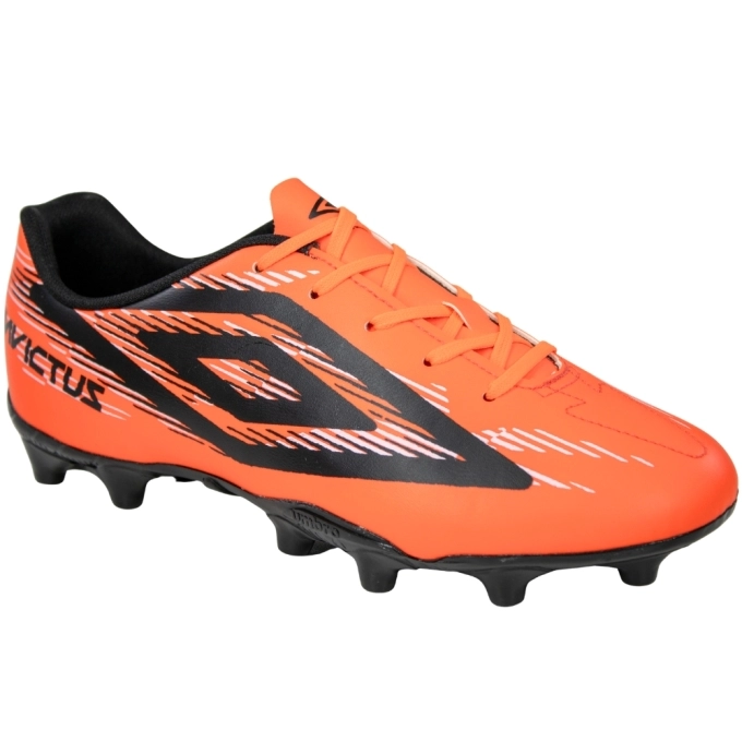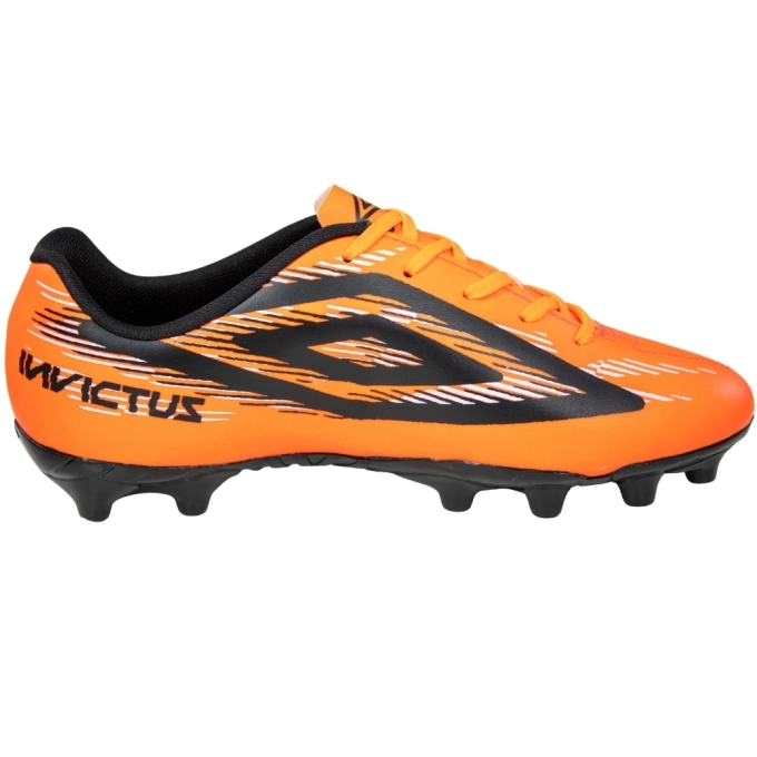 A Chuteira Campo Umbro Invictus, com design moderno em cor vibrante laranja, o modelo se destaca pela sua identidade esportiva marcante, combinando com detalhes em preto e branco que reforçam a personalidade do jogador.Produzida em material sintético resistente, oferece maior durabilidade e facilidade na limpeza, além de um ajuste confortável aos pés. O fechamento em cadarço garante firmeza durante as partidas, proporcionando mais segurança em cada movimento. Seu solado com travas fixas é perfeito para campos de grama natural, garantindo ótima tração, estabilidade e impulsão, ajudando no desempenho em jogadas rápidas e mudanças de direção. Ideal para atletas que buscam leveza, conforto e performance, essa chuteira é perfeita tanto para treinos quanto para jogos.