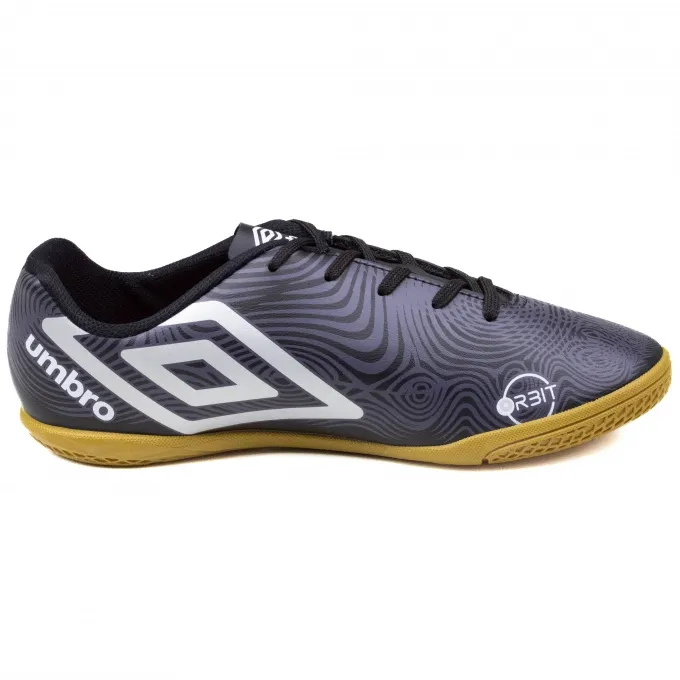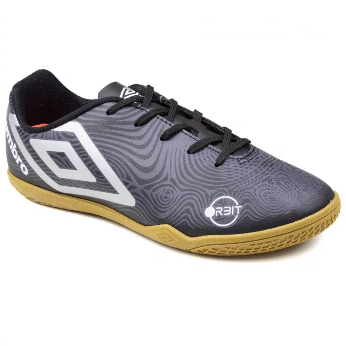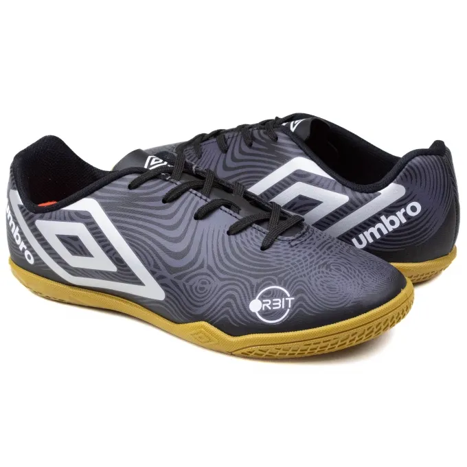 A Chuteira Umbro Indoor Orbit é indicada para jogadores iniciantes, seu modelo tem cabedal em sintético com um design autêntico e contemporâneo com grafismos exclusivos que trazem linhas orgânicas em movimento. Sua parte interna é têxtil e sua palmilha macia em EVA com poliéster forrado. Possui fechamento em cadarço para melhor ajuste aos pés e seu solado é construído em blenda de TPU com PVC para maior aderência.