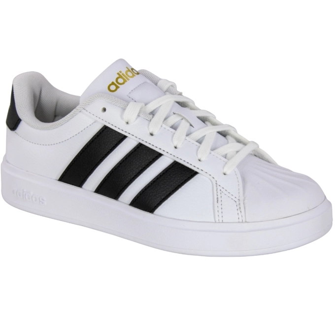 O Tênis Adidas Streettalk, combina estilo clássico e conforto para o dia a dia. Seu design inspirado no icônico visual urbano da marca traz o cabedal em material sintético de alta qualidade, com acabamento liso e as inconfundíveis três listras brancas nas laterais. O solado emborrachado garante aderência e durabilidade, enquanto o interior acolchoado oferece conforto extra a cada passo. Com fechamento em cadarço para ajuste firme e personalizado, o modelo apresenta biqueira reforçada e o logotipo Adidas em destaque na lingueta e na entressola. Ideal para compor looks casuais e esportivos, é a escolha certa para quem busca um visual moderno com o autêntico DNA da marca.